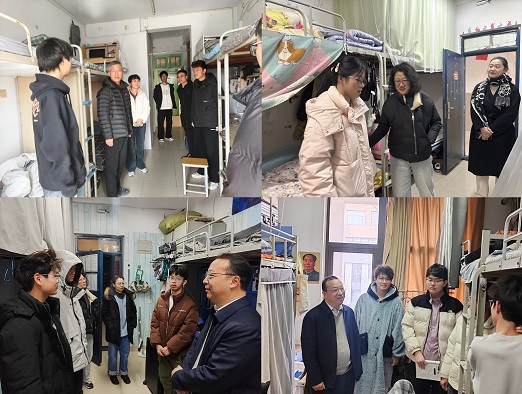 领导班子深入学生宿舍,开展春季新学期宿舍安全专项检查暨关怀慰问活动。