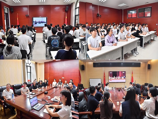 青马班成员、主要学生骨干在繁塔楼A418教室集中收看。教工支部、研究生支部、本科生支部、各学生班分别组织集中收看。