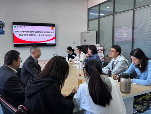本网讯(通讯员 潘雯雯)10月23日下午,信息与管理科学学院管理科学系教工党支部和深圳市中海物流技术有限公司党支部开展“支部共建聚合力 同心互融促发展”结对共建活动。深圳市中海物流技术有限公司副总经理赖礼芳、学院副院长李晔出席活动,管理科学系教工党支部党员代表和物流专业硕士生代表参加座谈会,会议由管理科学系教工党支部书记刘盼主持。